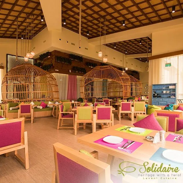 So basically this is a cafe/restaurant with Levant cuisine mainly and shisha. They have indoor seating if you don’t want to want to be in the smoking section. The outdoor part is not really ‘outdoors’. It’s a big closed patio-like area. The very high ceilings give the area a nice dramatic effect in addition to how well-ventilated the place is because of them. Now the food; that’s why I came here in the first place 😬 I was staying at a nearby hotel and wanted to have lunch. Looking at the menu, the waitress pointed out their lunch offer. A choice of two cold mezzes (appetizers) a salad and a main course for 55dhs. She mentioned they were small portions, enough for one person. I was in for a surprise... the appetizers were not that mini 🙈 and the main course was almighty full portion. I went for Hummus, waraq inab (stuffed vine leaves), and fattoush salad. For the main, I went with the waitress’ recommendation and ordered the ouzi (filo pastry stuffed with spiced rice, minced meat, and pulled lamb, then baked to crisp up the pastry) 😋 Taste test: passed with flying colours! The ouzi was amazing... the rice was spiced well (the way I like), - note: these are middle eastern spices: cardamom and cloves as opposed to hot chili, curry or cayenne... the side of cucumber yoghurt salad was a nice addition as well. The vine leaves were nice; rice and leaves cooked well. Hummus, nice. My only comment would be that the fattoush was a bit too soaked in the dressing, as I kind of like the veggies to be more on the crispy side. They apparently have another location in Al Jimi mall, which is probably closer if you are coming from Abu Dhabi, as Hili Mall is at the side going to Dubai. Also, I noticed they were on Talabat, so may be they can deliver if you’re staying at a hotel further from the two malls. All in all, I was pleasantly surprised with my discovery of food, atmosphere and pleasant service. Note: the lunch offer runs from noon until 4:00 pm.