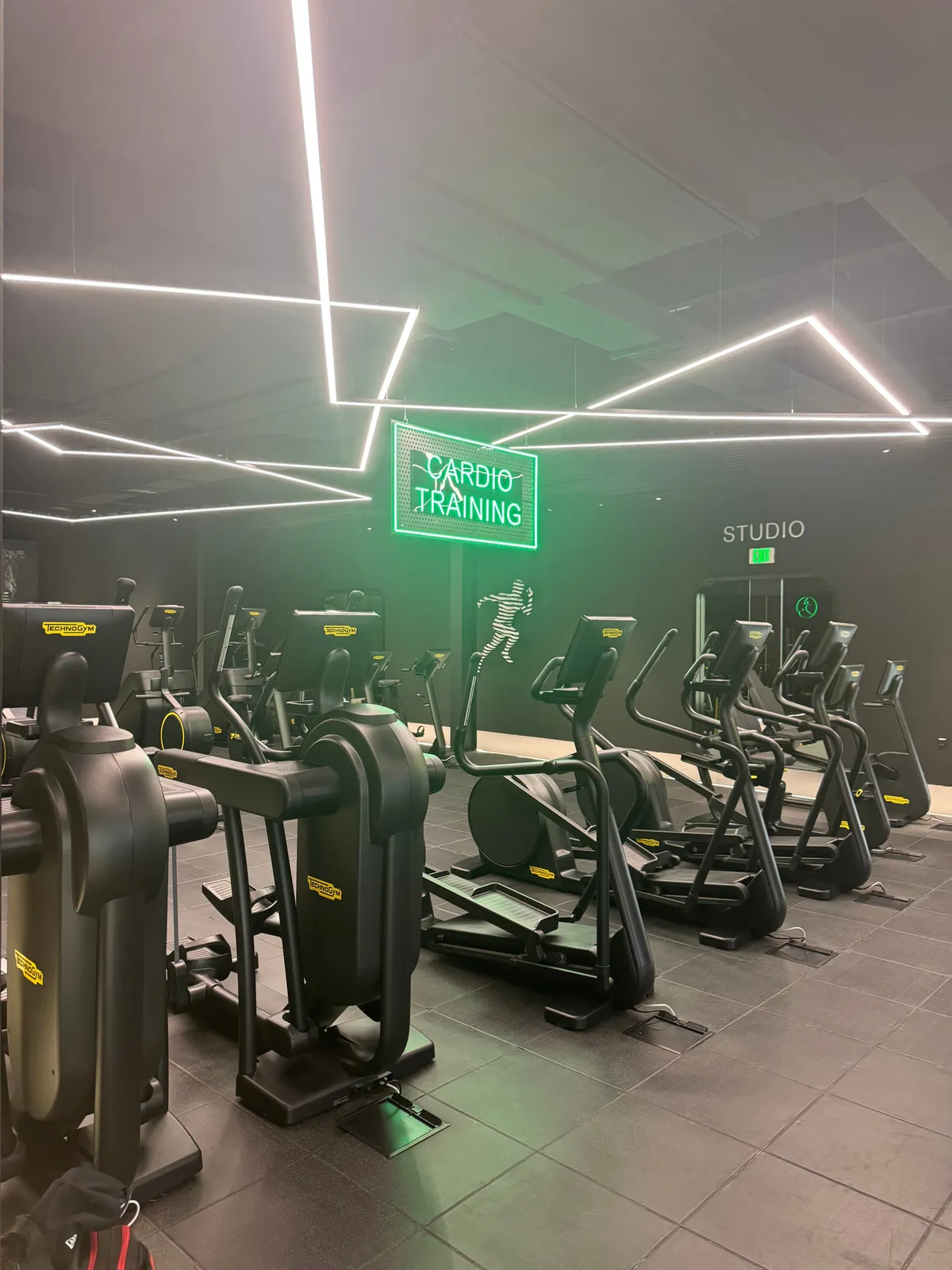 Gigafit in Al Quoz is one of Dubai's more polished premium fitness clubs, built across two well-designed floors with the kind of dark, contemporary finish that reads closer to a members' studio than a mainstream gym. The space is generously proportioned, zoned cleanly into cardio, free weights, functional training and a dedicated boxing area, and stocked throughout with Technogym equipment that stays well maintained and in good working order.