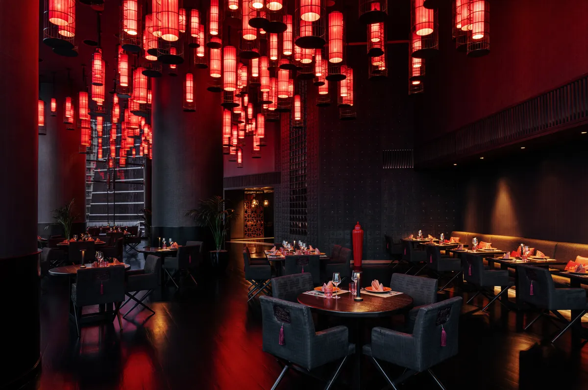 تونغ تاي هي صالة الطعام التايلاندي الفاخر في جيه دبليو ماريوت ماركيز دبي في الخليج التجاري، مطعم أنيق بهدوء في أحد الطوابق العلوية من الفندق بإطلالة كاسحة نحو أفق وسط المدينة. التصميم الداخلي يقرأ مصقولاً لا موضوعياً - خشب داكن، لمسات ذهبية، تفاصيل بساتين الأوركيد، طاولات متباعدة بحميمية - والأجواء متأنية ورومانسية، تناسب عشاءً طويلاً لا طبقاً سريعاً. تتحول الإطلالة عبر نوافذ من الأرض إلى السقف بسلاسة من الغروب إلى مدينة مضاءة بالكامل بمجرد أن تخفّت الصالة.