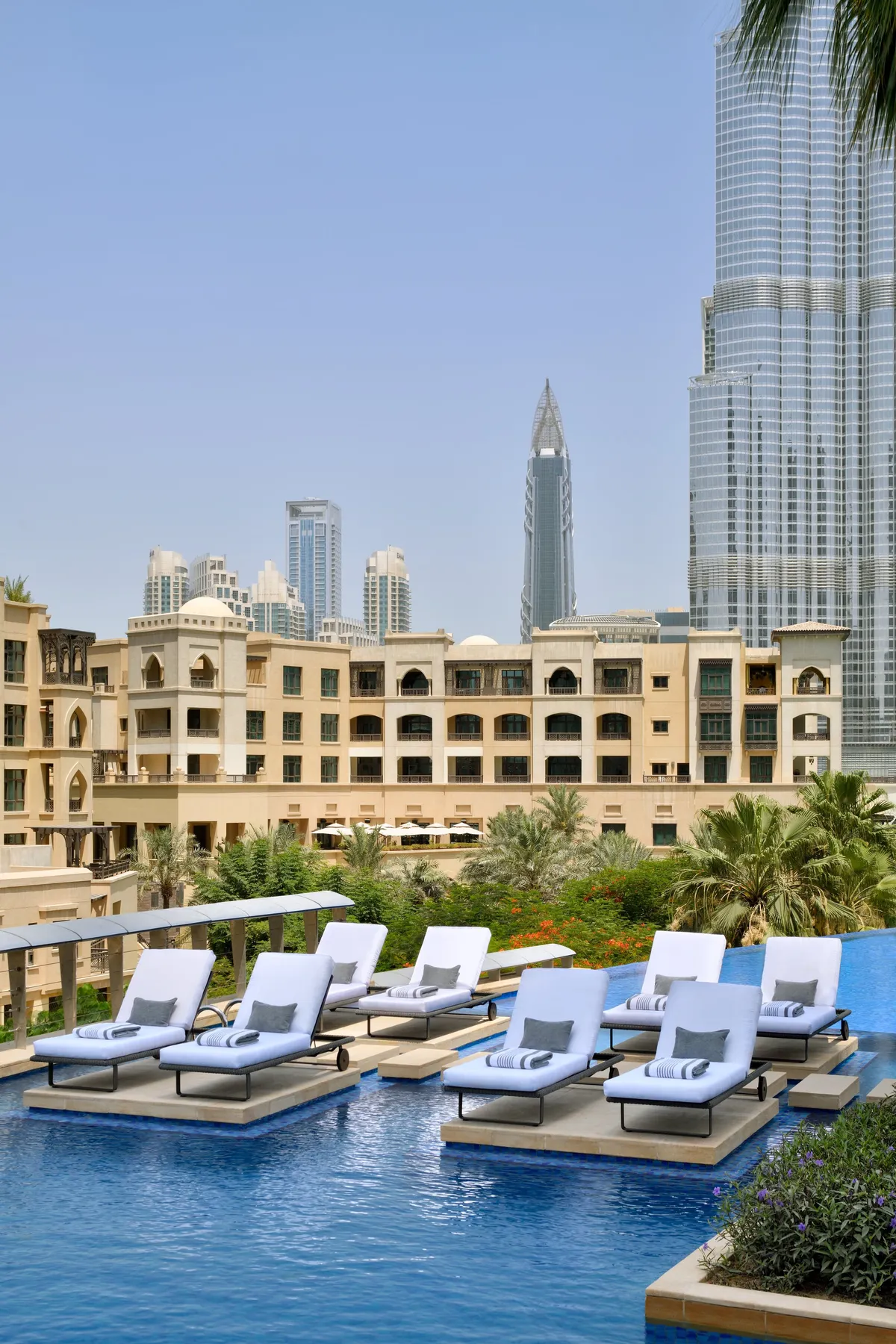 العنوان وسط المدينة هو رائد علامة الضيافة المحلية لإعمار وما يزال أرجح تعبيراتها ثقة: برج طويل وأنيق مزروع مباشرة على حافة بحيرة برج خليفة، مع جسر مكيّف الهواء يمتد مباشرة إلى دبي مول، وخطوط رؤية غير معاقة لبرج خليفة من معظم غرفه في الطوابق العليا. الأجواء في اللوبي الرخامي-الخشبي رزينة لا براقة، وحس الوصول يضع النغمة لعقار يعتمد على ثقة هادئة واتساق.